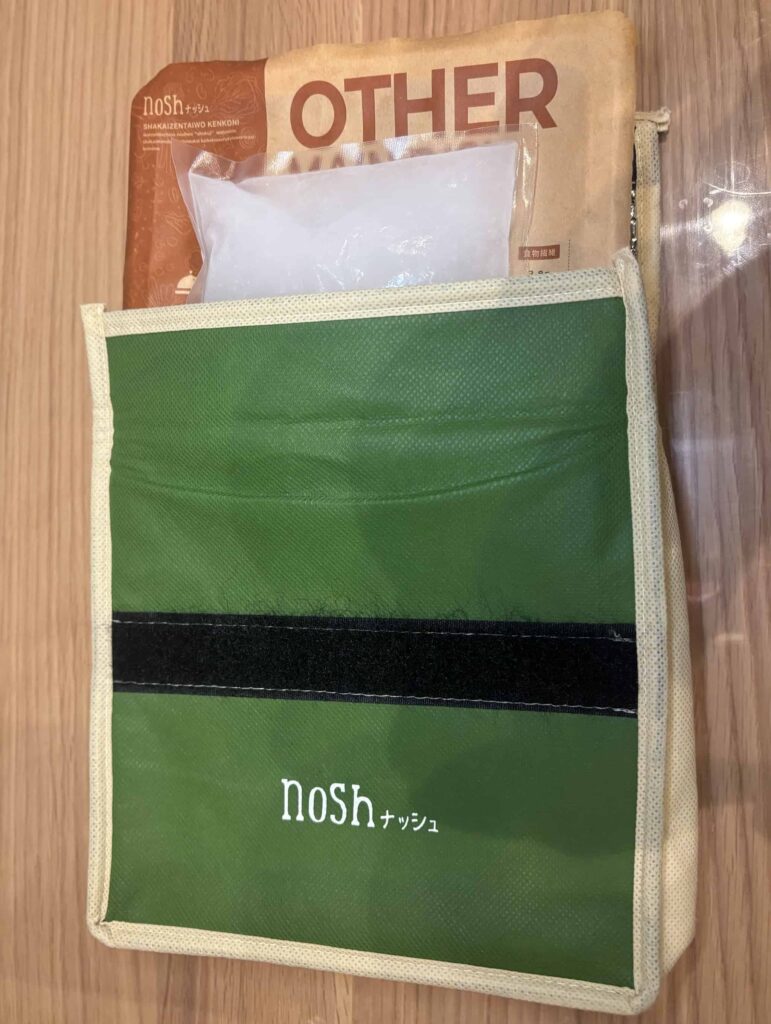 ナッシュが入った保冷バッグを縦置きしてスタート