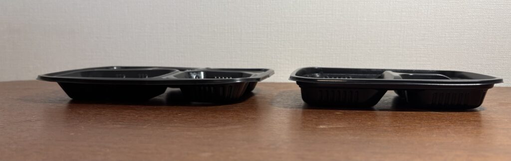 同じメニューを並べてみると、まず目に入るのはトレイの大きさの違い。