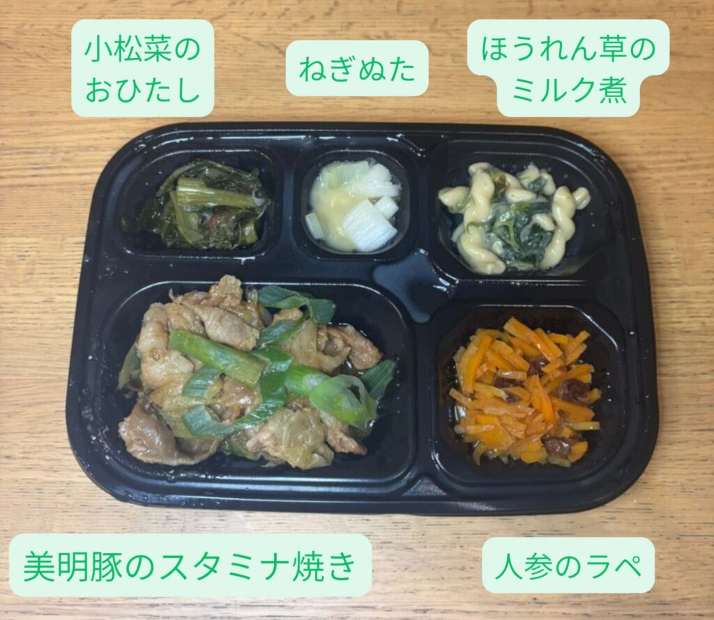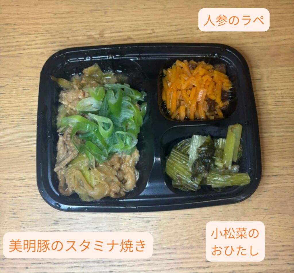 三菜版はこちら。主菜のスタミナ焼きに加えて、副菜が2品ついた構成。